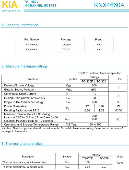充電器MOS管 KNX4660A 7A/600V產(chǎn)品規(guī)格書-貨源穩(wěn)定 免費(fèi)送樣-KIA MOS管