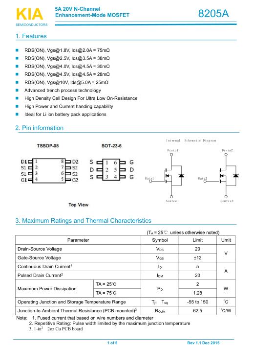 參數: ID(A): 4 BVDSS(V): 20 RDS(ON): 0.03 Qg(nC): 6.24 Package: SOT-23