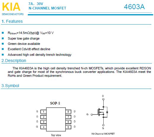 參數: ID(A): 7    BVDSS(V): 30    RDS(ON): 0.03    Qg(nC): 6    Package: SOT-8
